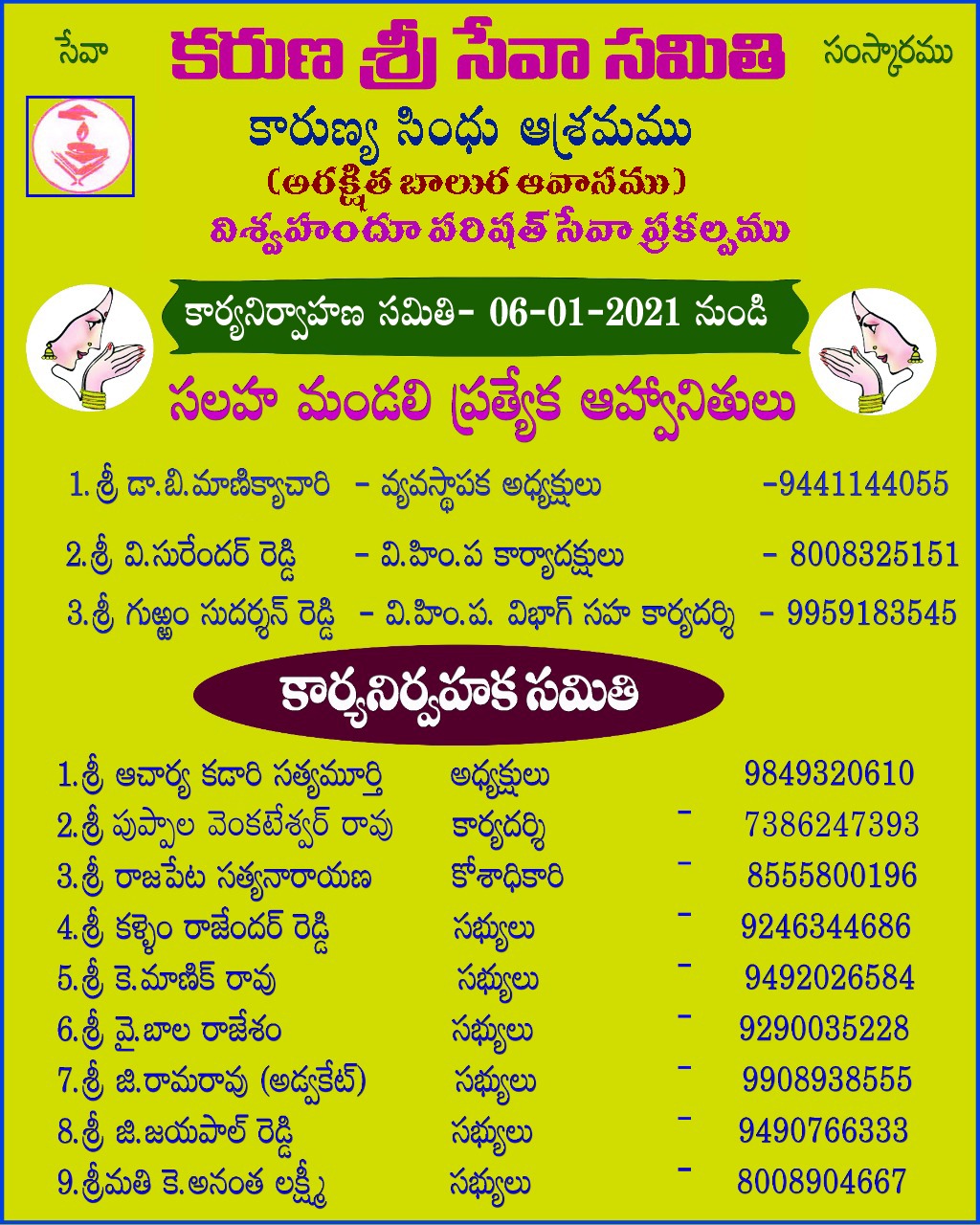 present committee details (giving their name, qualification, mobile No., Aadhar No.PAN Number, addresses, last post held & organization in which worked, present status in the organization with Photo (These details should be period-wise)
