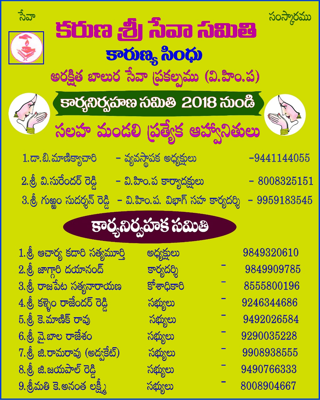 present committee details (giving their name, qualification, mobile No., Aadhar No.PAN Number, addresses, last post held & organization in which worked, present status in the organization with Photo (These details should be period-wise)