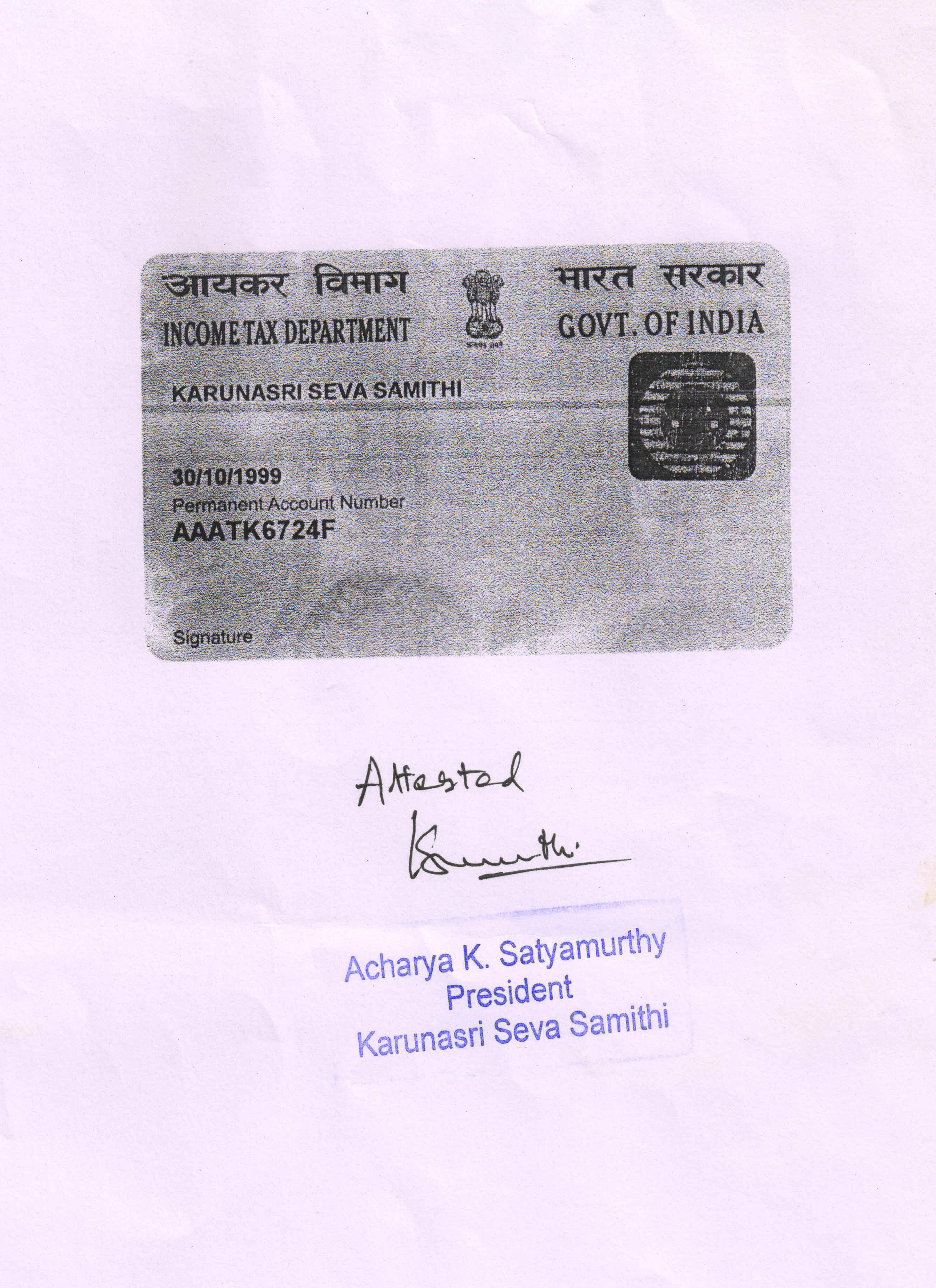 CERTIFICATE FROM INCOME TAX DEPARTMENT U/S. 12A
